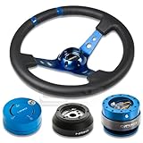 NRG-SRK-170H+200NB+101NB+016RBL, NRG Innovations 13.78" 350mm 3" Deep Dish Style Black Leather Blue Center Marking Blue Spokes Racing Steering Wheel Combo with 6 Hole Short Hub Adapter with Gen 2.0 New Blue Quick Release with New Blue Lock Hub Kit SRK-170H