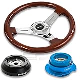 NRG-SRK-160H+0151CH+250NB, NRG Innovations 13" 330mm Deep Dish Style Wood Grain Silver Spokes Racing Steering Wheel Combo with 6 Hole Short Hub Adapter with Gen 2.5 New Blue Quick Release Kit SRK-160H